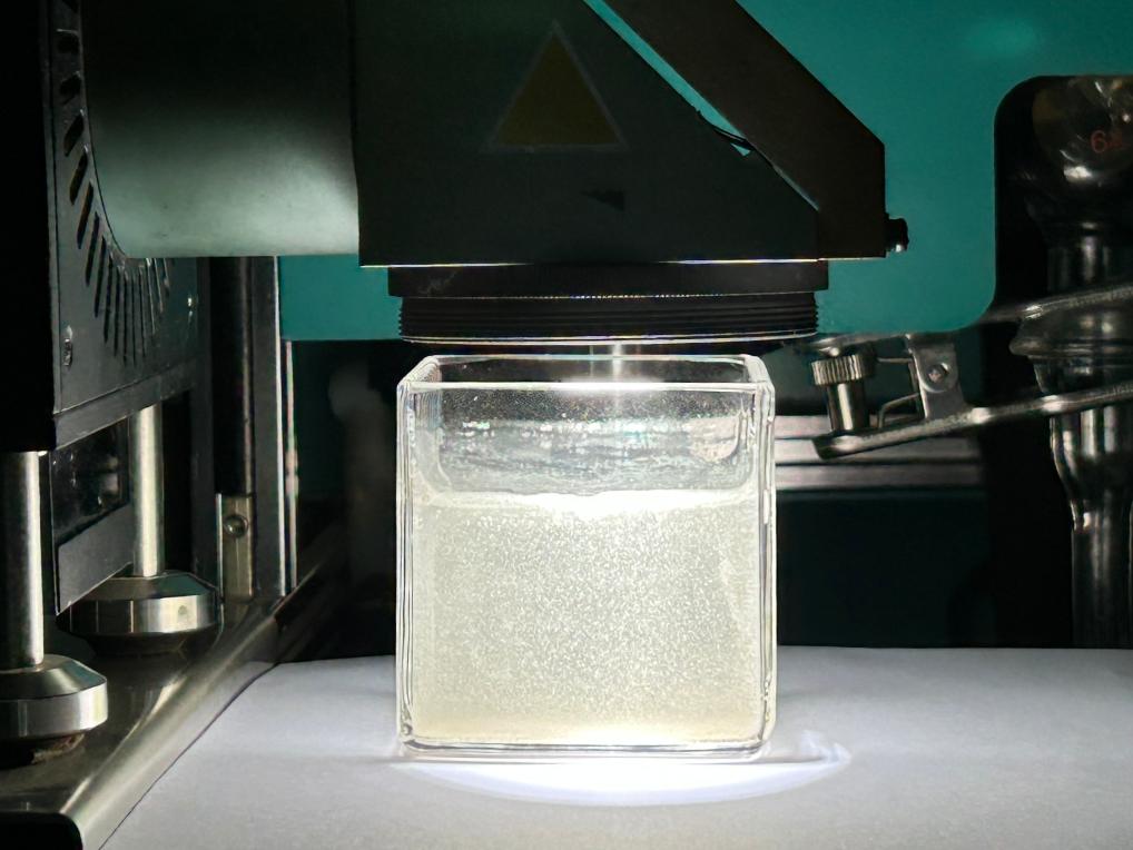 在模擬太陽(yáng)光下,科研人員利用改造后的二氧化鈦催化材料分解水制氫。新華社記者 劉禎 攝